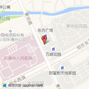 乐清市人民医院占地面积约:59817㎡和浙江省温州市乐清市城南街道清远路195号东方广场(清远路)相距 ⇄ 44.5212m