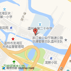 温州市第二十中学占地面积约:18226㎡和温州市龙湾区龙飞锦园北门旁相距 ⇄ 33.9068m