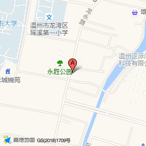 永胜公园占地面积约:2928㎡和温州市龙湾区龙永路与龙水北路交叉口北180米相距 ⇄ 50.2881m