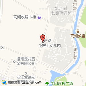 小博士幼儿园(高翔路)占地面积约:1138㎡和温州市瓯海区高翔路与高歌路交叉口东北20米相距 ⇄ 28.1692m
