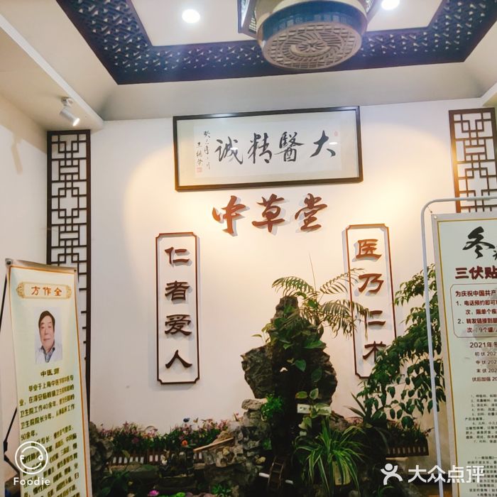 中草堂位于乐二路与永兴路交叉口东120米(者也Studio)培训机构西北方向144.3米的位置。