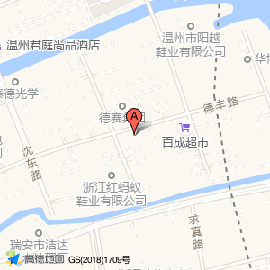 温州市豹子头鞋业有限公司占地面积约:5554㎡和温州市瓯海区德丰路与罗成路交叉口东60米相距 ⇄ 0m