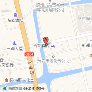 怡莱酒店(温州瑞安塘下葡京店)占地面积约:512㎡和温州市瑞安市广场西路与京福线交叉口东120米相距 ⇄ 30.0297m