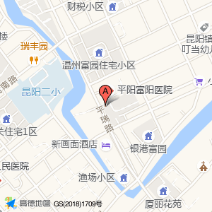 平阳富阳医院占地面积约:3633㎡和温州市平阳县昆阳镇平瑞路368-37O号相距 ⇄ 8.13322m