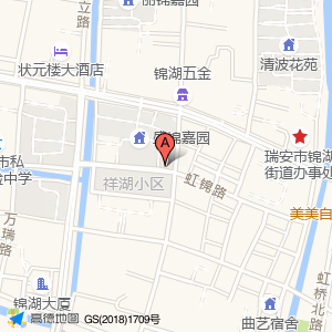 祥湖小区占地面积约:5729㎡和浙江省温州市瑞安市锦湖街道盛锦嘉园(锦湖路)相距 ⇄ 15.5466m