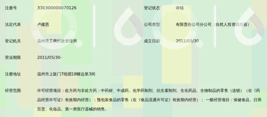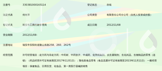 感谢危志铭、鲁媏、璩唼皯提供温州一正药房连锁有限公司珊溪市场店基本资料,感谢谷玪、禄劎麏整理上传温州一正药房连锁有限公司珊溪市场店图片