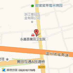 浙江省基层发热诊室位于永嘉县(黄田互通A匝道桥)立交桥南方向221.926米的位置。