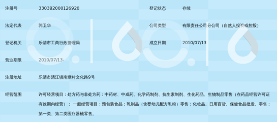 | 所属类型:药房 | 地址:浙江省温州市乐清市南塘镇文化路(南塘镇北街6号) |