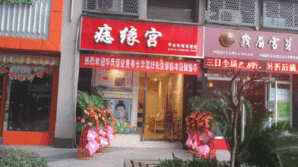 痣缘宫位于幸福东路38号时代广场1层(麦当劳(时代广场店))麦当劳西南方向48.7675米的位置。