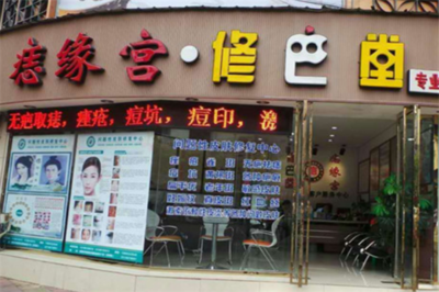 痣缘宫位于幸福东路38号时代广场F1层(吴越春秋画室)培训机构西南方向30.5443米的位置。