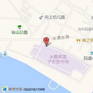 以撒刺参批发(乌牛店)位于瓯北街道码道村交通东路66号(永嘉菜篮子)蔬菜市场|农副产品市场东南方向116.02米的位置。