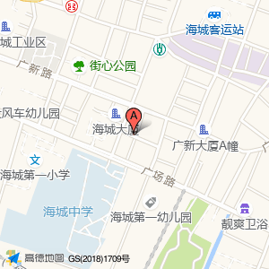 合家欢公寓房出租位于海城街道广场路111号(海城第一幼儿园)幼儿园南方向160.164米的位置。