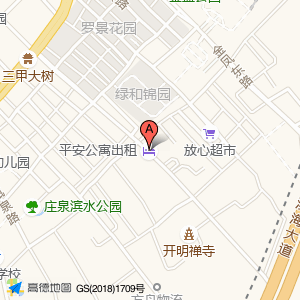 平安公寓出租位于庄泉东路与滨海大道交叉口西北200米(开明禅寺)寺庙道观东南方向194.142米的位置。