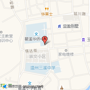 瞿溪华侨中学占地面积约:17436㎡和温州市瓯海区瞿溪街道信达街259号相距 ⇄ 4.98007m