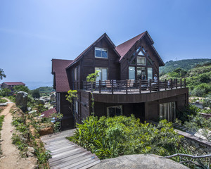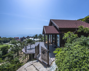 南麂岛迷途三盘客栈位于南麂岛必去景点——三盘尾景区入口,近三盘尾景点。客栈大窗、阁楼、坡屋顶、木质家居、流畅的线条,无处不印着北美风情的烙印,配合着华丽的灯饰和挂饰,浓浓的北美风情和海岛风味相得益彰。穿过主楼,木梯连接着9栋海景木屋盘踞山中,进入房间后打开窗户,眼前的海天一色与三盘景色美不胜收。静坐屋内可听涛声拍岸,坐在临海的露台上,清风过耳,体验海岛的慢节奏生活。海天一色的无边际泳池,矗立于山腰,背山而立,面朝大海,依望三盘美景仿佛近在咫尺,海景的宏阔与浪漫尽收眼底。