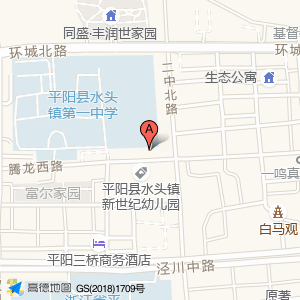 平阳县水头镇新世纪幼儿园占地面积约:3574㎡和温州市平阳县水头镇腾龙西路10-18号相距 ⇄ 31.674m