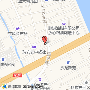 瑞安瑞豪时尚酒店位于大桥东路与远东路交叉口西40米(东风社区居务监督委员会)乡镇以下级政府及事业单位西南方向24.8357米的位置。