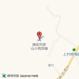 瑞安市依山小筑民宿位于高楼乡上村村(上村杨梅园区)采摘园东方向288.973米的位置。