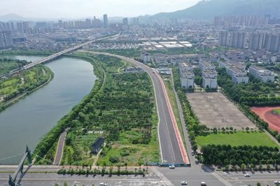沿瓯越大道途径瓯越大道辅路向南行驶2.4千米靠左进入中间岔道