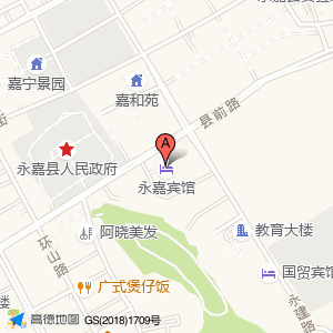 永嘉宾馆位于北城街道县前路85号(永嘉宾馆)三星级宾馆Center方向0米的位置。