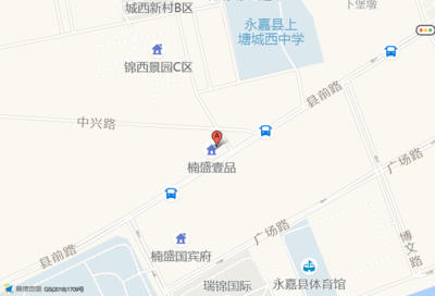 楠盛国宾府占地面积约:21288㎡和浙江省温州市永嘉县南城街道县前路856号楠盛国宾府(县前路与团结路交叉口东140米)相距 ⇄ 31.3989m