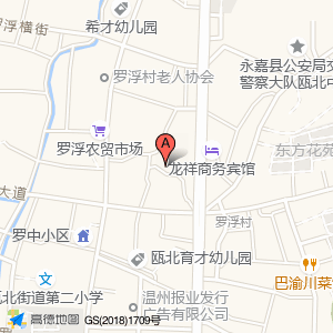 瓯盛旅馆位于永嘉县(罗浮三角)普通地名东南方向122米的位置。