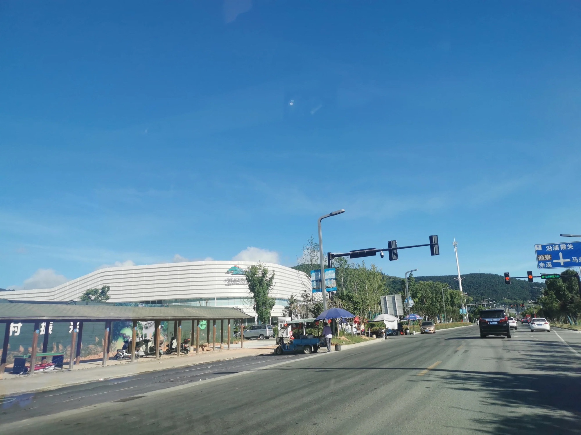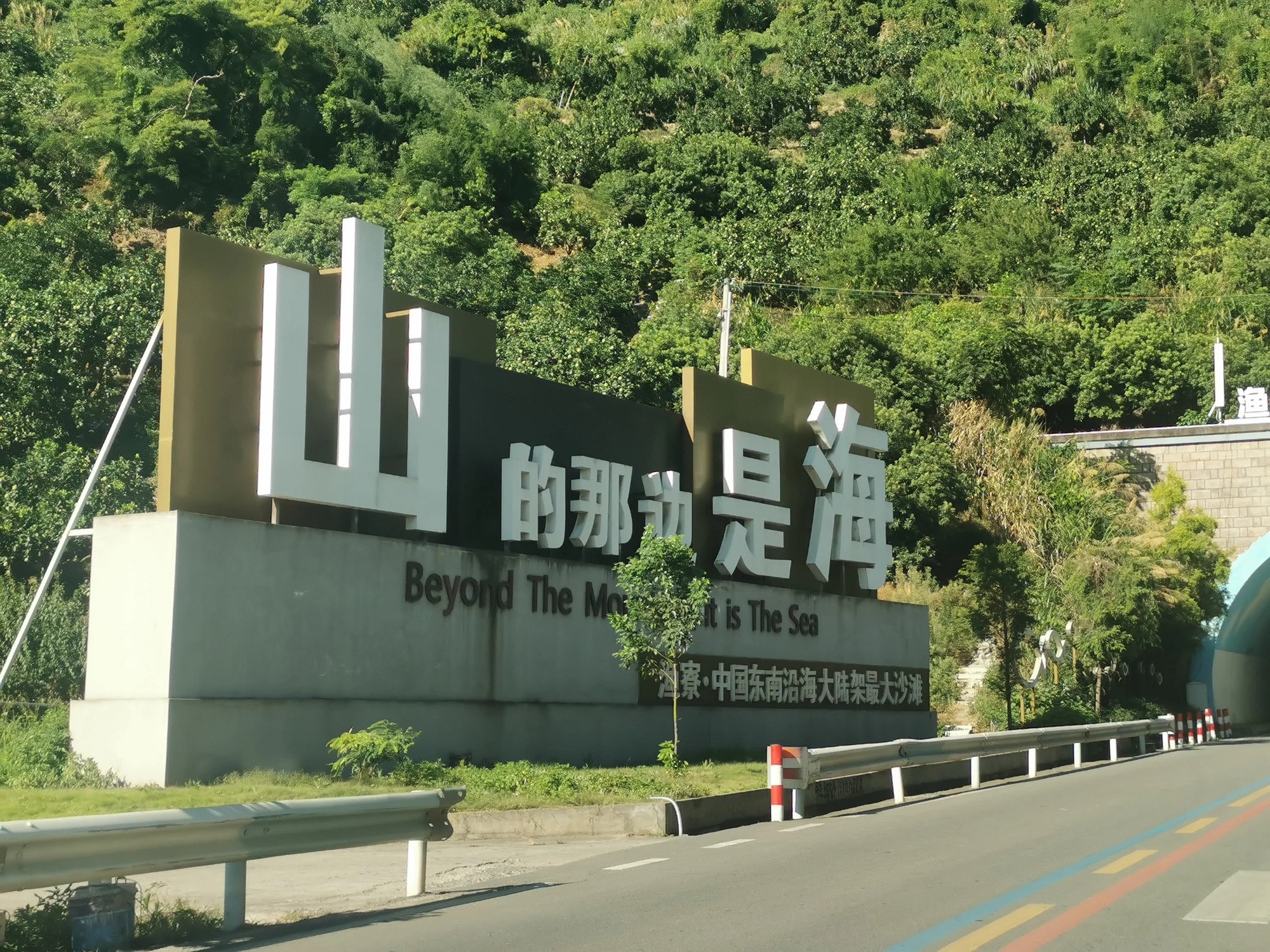 沿望洲山隧道途径大渔湾特大桥、G1523甬莞高速、龙沙大桥、安峰大桥向西南行驶6.8千米直行进入隧道