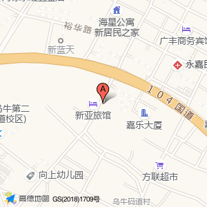 安祥宾馆位于乌牛街道广丰路(杰豪购物广场(广丰路店))普通商场东方向259.973米的位置。