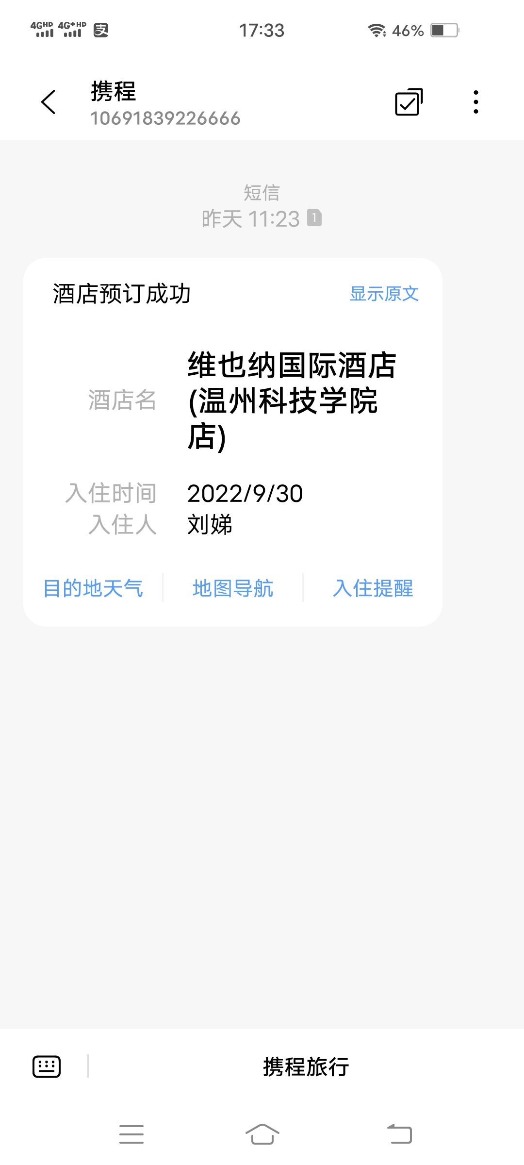 维也纳国际酒店(温州科技学院店)位于六虹桥路金宝莉商务宾馆旁边(香煎满屋生煎(六虹桥路店))中餐厅西方向127.648米的位置。