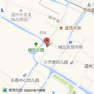城北公园占地面积约:2754㎡和温州市龙湾区英桥街与衙城街交叉口西南40米相距 ⇄ 45.4703m