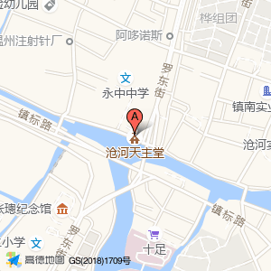 沧河天主堂周边地名,附近道路有哪些,沧河天主堂旁边有沧下路,罗东街辅路,镇标路,永强塘河绿道,罗东大街,中央汇路,永强东路,陈宅路,中河路,振中街,普中路,永中东路,镇标东路,太师路,普门北街,文康路,寺前街,罗东街,永汇路,沙门头路,等等地名。