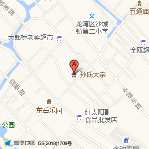 孙氏大宗位于怡心路与五甲街交叉口西40米(东岳乐园)旅游景点西南方向154.3米的位置。