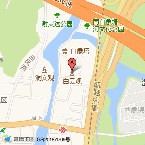 白云观概况介绍,地址位于瓯海区南白象街道瓯越大道辅路旁边,也就是在温州市瓯海区温瑞大道(白象社区居委会西南)附近。
