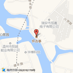怀古亭位于德丰路18号(温州市丰盛鞋业有限公司)公司西南方向378.721米的位置。