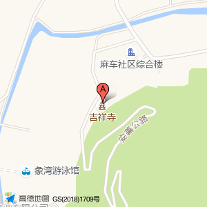 吉祥寺位于安善公路与黄象线交叉口西南50米(麻车社区综合楼)商务写字楼东北方向181.363米的位置。