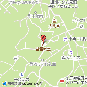 基督教堂位于洞头区(上后坑)村庄级地名西方向221.801米的位置。
