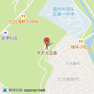 齐天大圣庙位于洞头风景名胜区(齐天大圣庙)寺庙道观Center方向0米的位置。