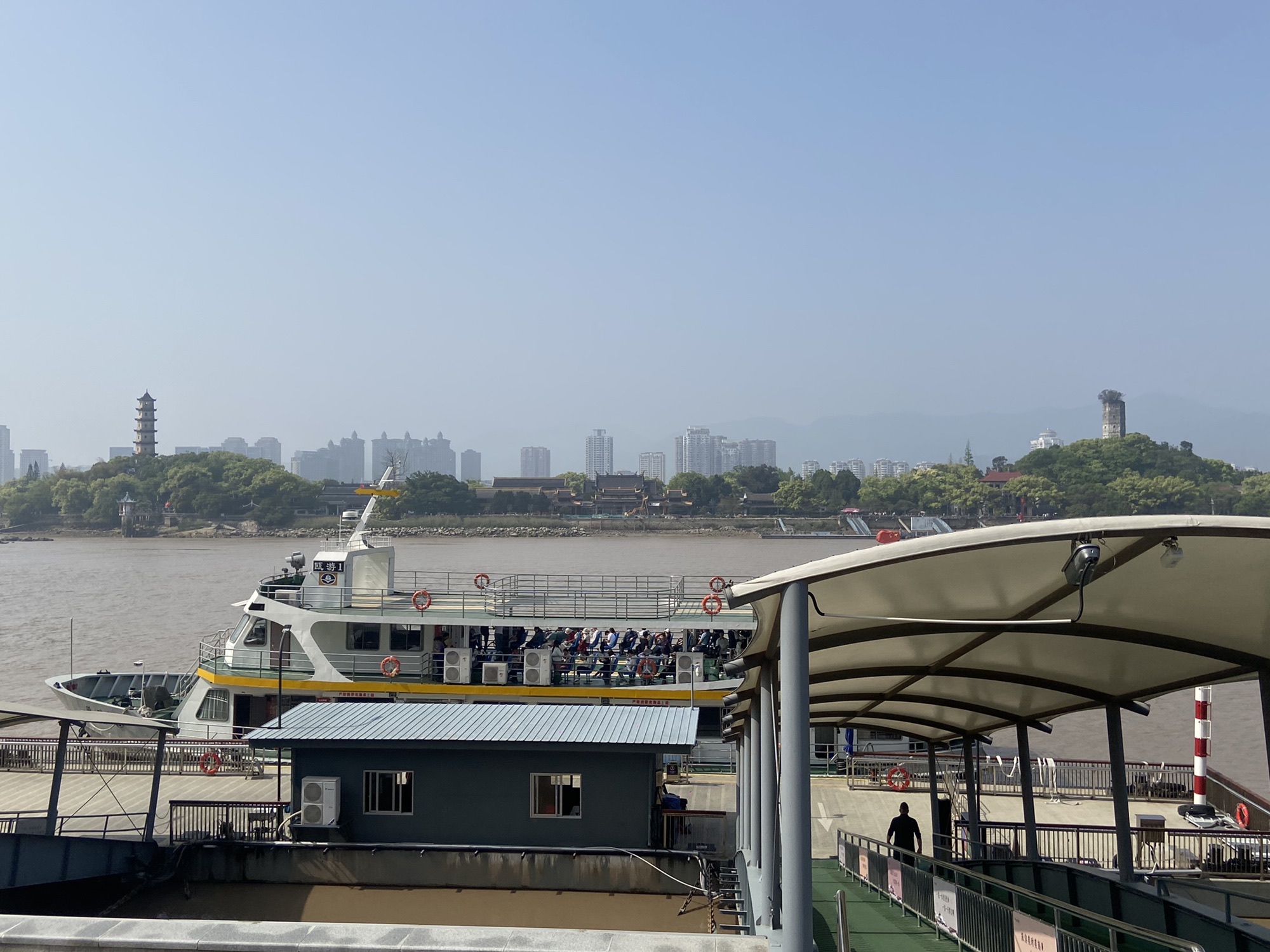 ☸坐轮船来江心屿在附近港口码头:温州江心渡口|距离:991m (浙江省温州市鹿城区望江东路温州市百里路小学东北侧)下船
