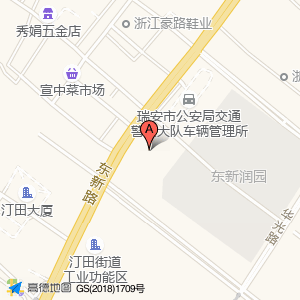 妙智堂周边单位有哪些,距离约:150米,**瑞安市公安局交通警察大队车辆管理所综合业务大厅**地址是浙江省温州市瑞安市东新路与小典下路交叉口南100米,是政府机构及社会团体;交通车辆管理;交通管理机构方面的单位部门。