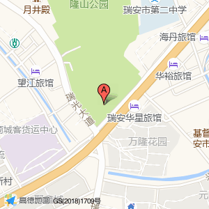 隆山公园占地面积约:124898㎡和温州市瑞安市瑞光大道与瑞祥大道交叉口相距 ⇄ 0m