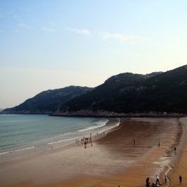 大沙岙--洞头最美丽的海滩,又名“黄金滩”。其状呈畚箕形,东北朝大海。退潮时露滩,坡度平缓,海面开阔,海水清澈。沙质为纯净铁板沙,坚硬细腻,踩后无明显痕迹。半环抱浴场的岩怪,有“海豹石”,“老鹰捕雏”、“猛虎卧岗”等。浴场上部布着一条鹅卵石带;实为理想的游泳场和帆板、皮筏艇训练基地;此外还可以采贝,写生。