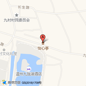 怡心亭位于九村路888号(温州九珑湖酒店)宾馆酒店西南方向216.628米的位置。
