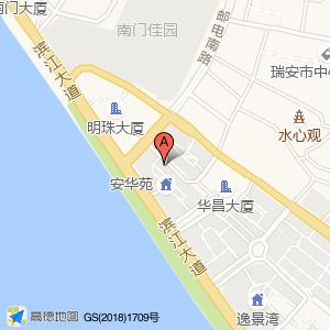 安华苑占地面积约:7876㎡和温州市瑞安市邮电南路与滨江大道交叉口东80米相距 ⇄ 0m