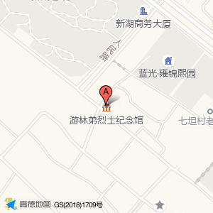 游林弟烈士纪念馆位于万松东路辅路与人民路交叉口西220米(新湖春晓玉澜苑)住宅小区北方向352.828米的位置。
