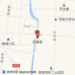 胜昔亭位于镇海路与邮电路交叉口(团前村党群服务中心)乡镇以下级政府及事业单位西方向287.896米的位置。