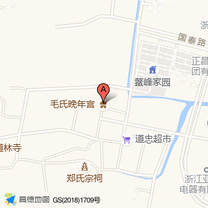 毛氏晚年宫位于塘下镇国泰路(鳌峰家园)住宅小区东北方向183.279米的位置。