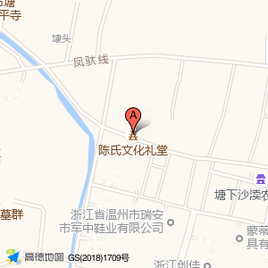 陈氏文化礼堂位于高横路288号(瑞安市军航科技有限公司)公司南方向182.33米的位置。