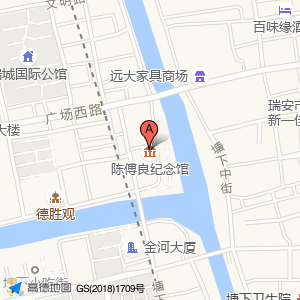 陈傅良纪念馆位于塘下中街与广场西路交叉口南20米(治安岗亭)社会治安机构东北方向138.58米的位置。
