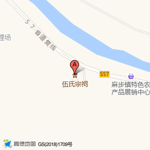 伍氏宗祠位于麻步镇特色农产品展销中心西侧230米(伍氏宗祠)风景名胜Center方向0米的位置。