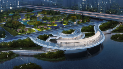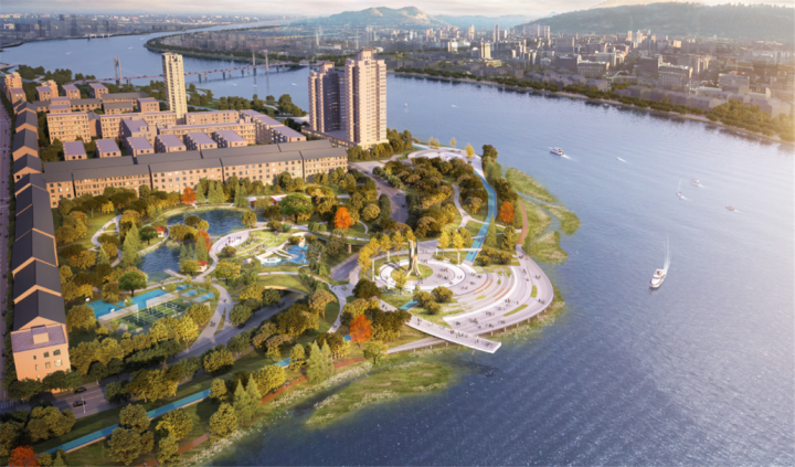ⓞ沿江滨路向东南骑行860米左转